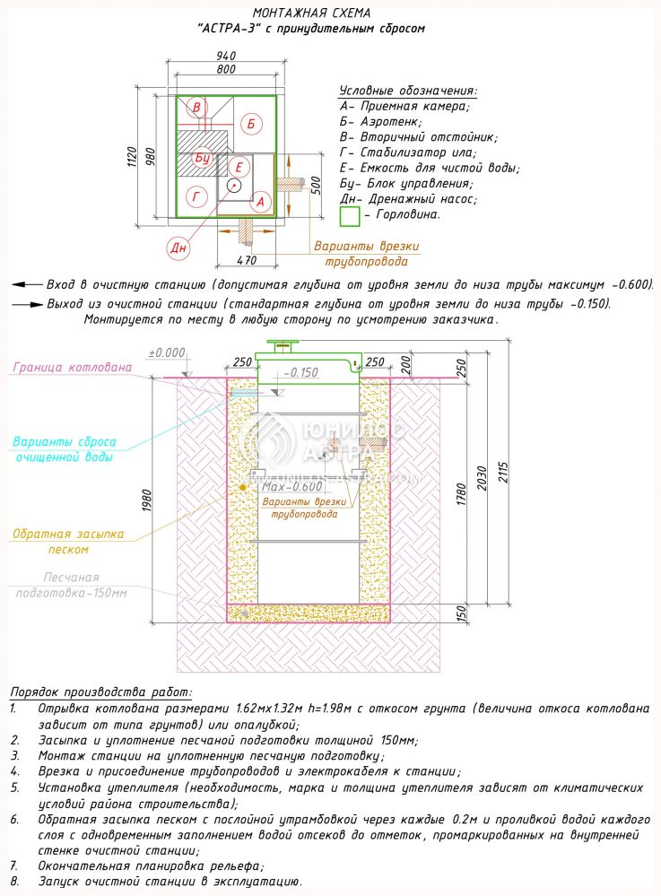 Объем переработки: 0.6 м3/сут